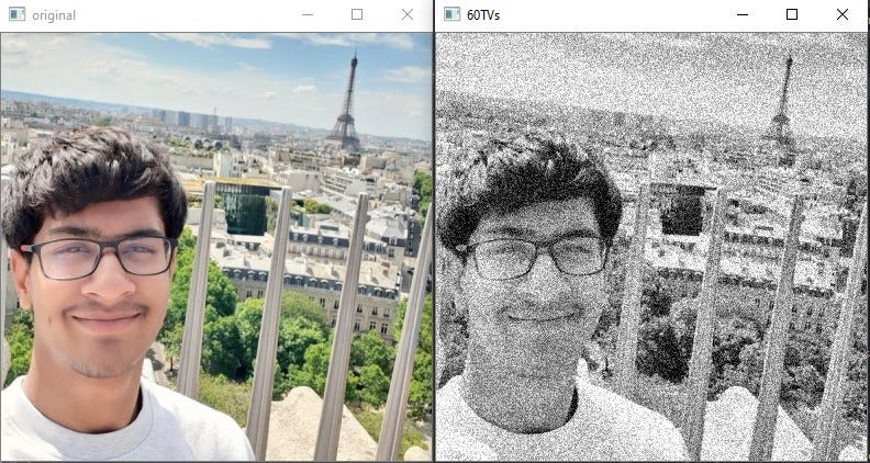 In the 60s in that location used to blackness and white televisions and there was a lot of noise due to loss of data. To create this filter we convert our prototype to grayscale and then randomly induce a lot of noise by adding or subtracting a random number and make certain to stay inside our limit of 0 to 255.