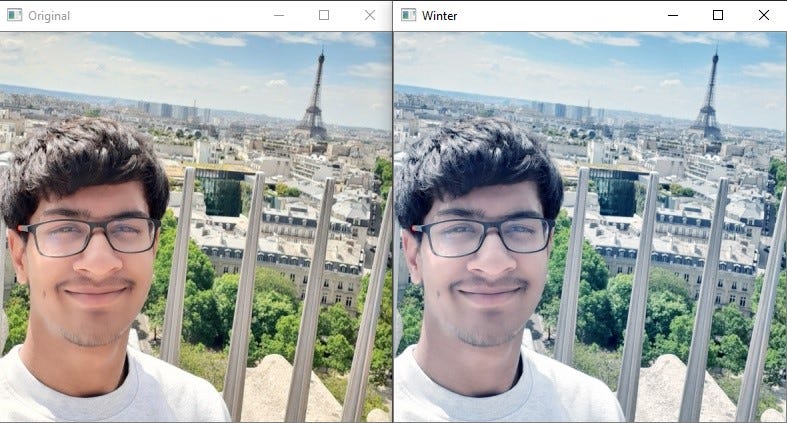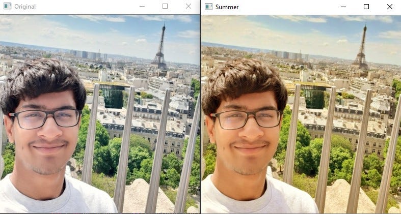 We all accept edited our images to perhaps better the white balance, increment warmth, use unlike filters or even to crop out a person we don't similar. Have you ever wondered how all the software available did this or how nosotros could do this ourselves with code? If so then you lot are in the right place. In this article and it's second office we will leverage the power of OpenCV to edit our images in as many as xiv ways and another article, for creating frames for our images. Don't worry because this does not include the usual stuff like sharpening, cropping and blurring the images only instead filters like summer, 60TVS, splash, cartooning, embossing, pencil sketch, sepia and many more where most of them are inspired by Abode Photoshop Limited itself.
